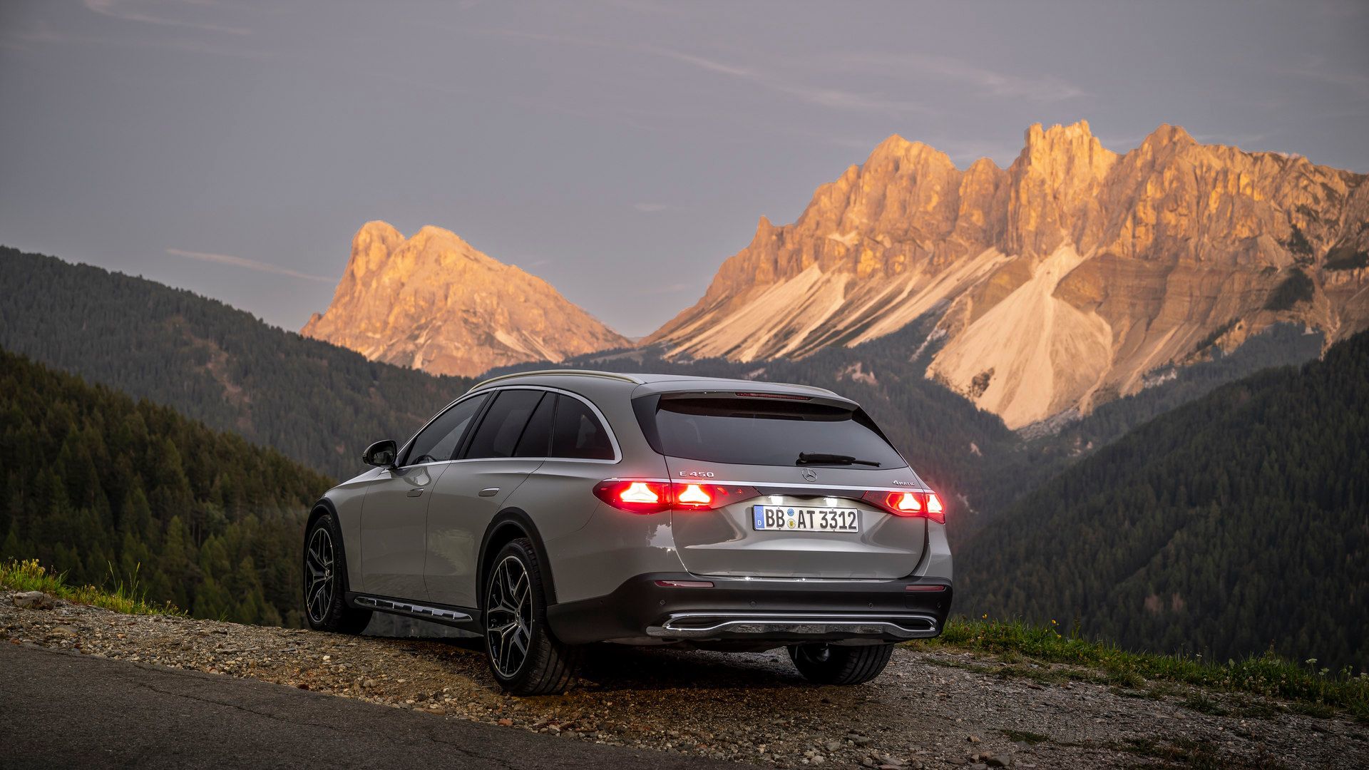 Des éléments de design tout-terrain distinguent le modèle All-Terrain de la berline Classe E standard, notamment une calandre unique, des pare-chocs spéciaux, des protections avant et arrière chromées contre les chocs par le dessous et des élargisseurs d'ailes gris foncé. Des roues de 19 pouces sont montées de série, avec des roues de 20 pouces offertes en option.